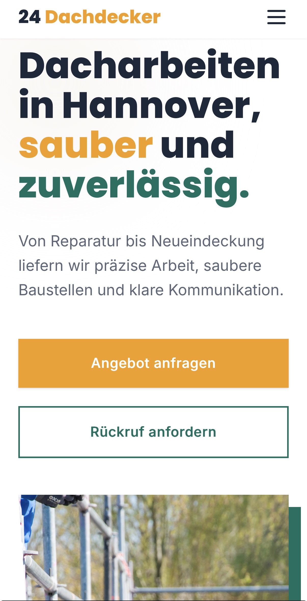 24 Dachdecker ist eine von Uns erstellte Referenz-Seite für einen Dachdecker aus Hannover, Niedersachsen.