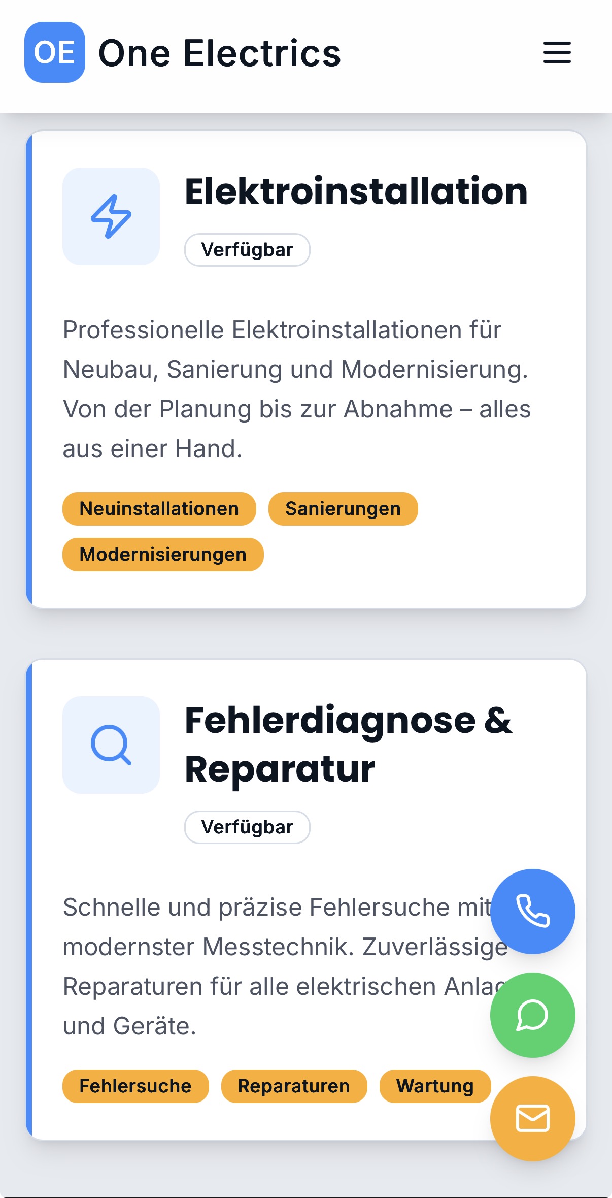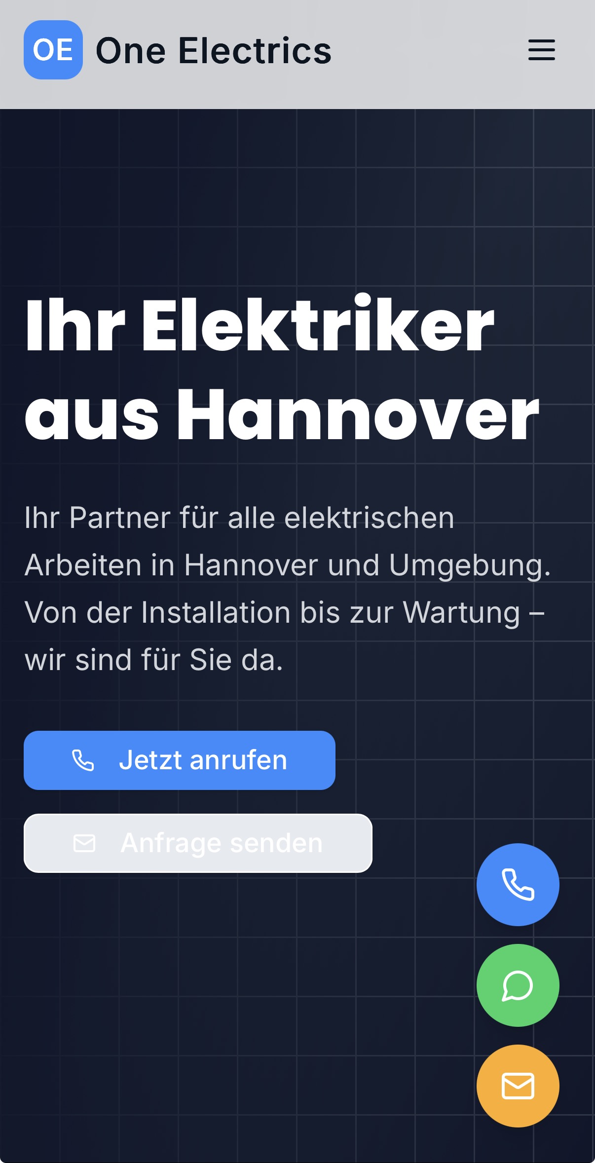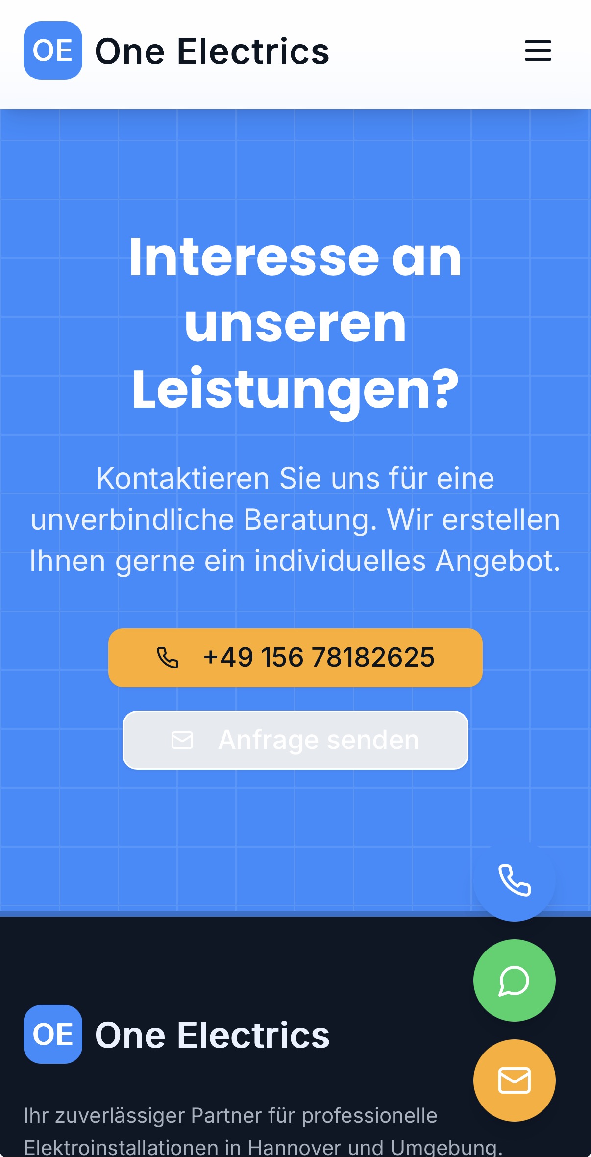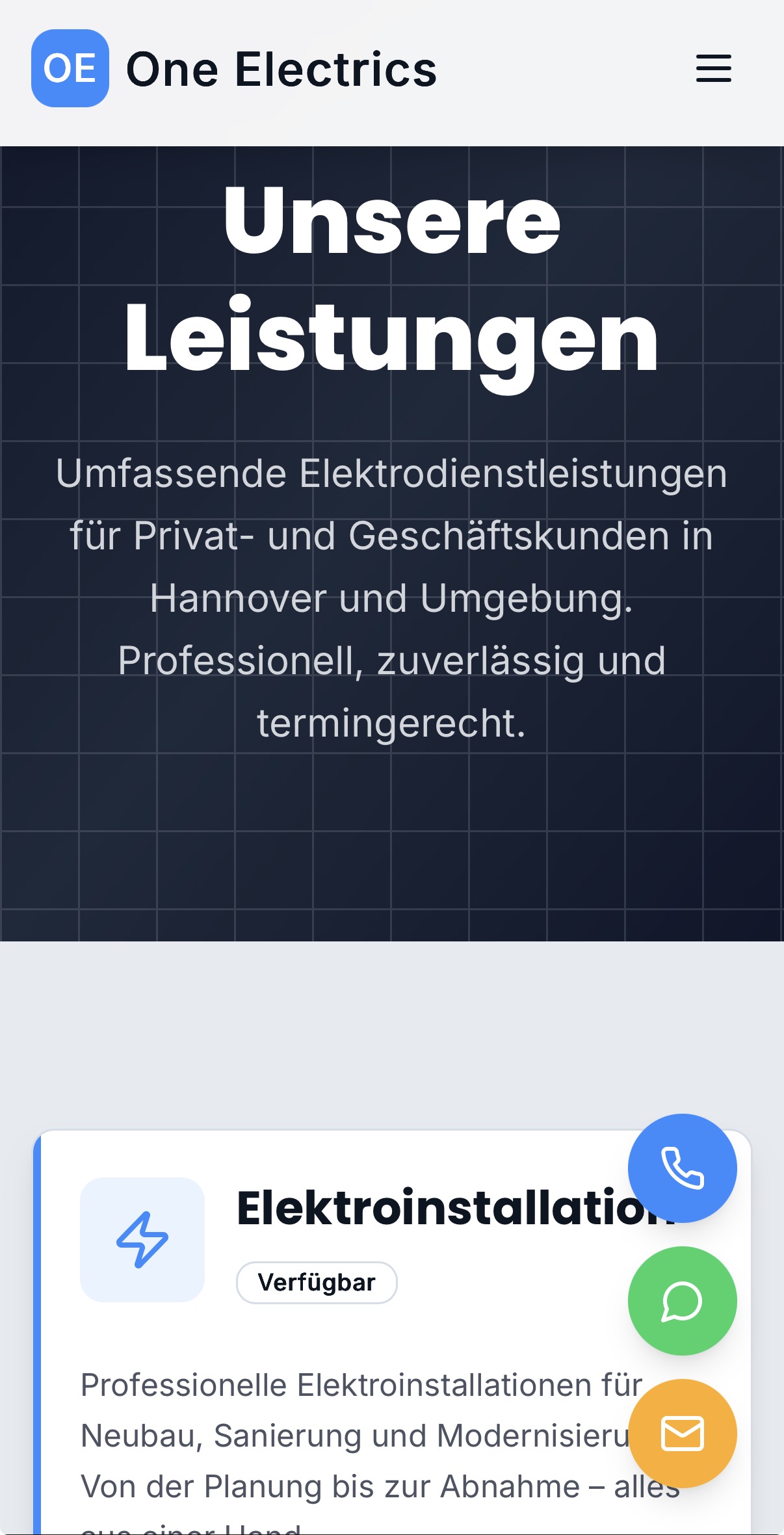 One Electrics ist eine von Uns erstellte Referenz-Seite für einen Elektrobetrieb aus Hannover, Niedersachsen