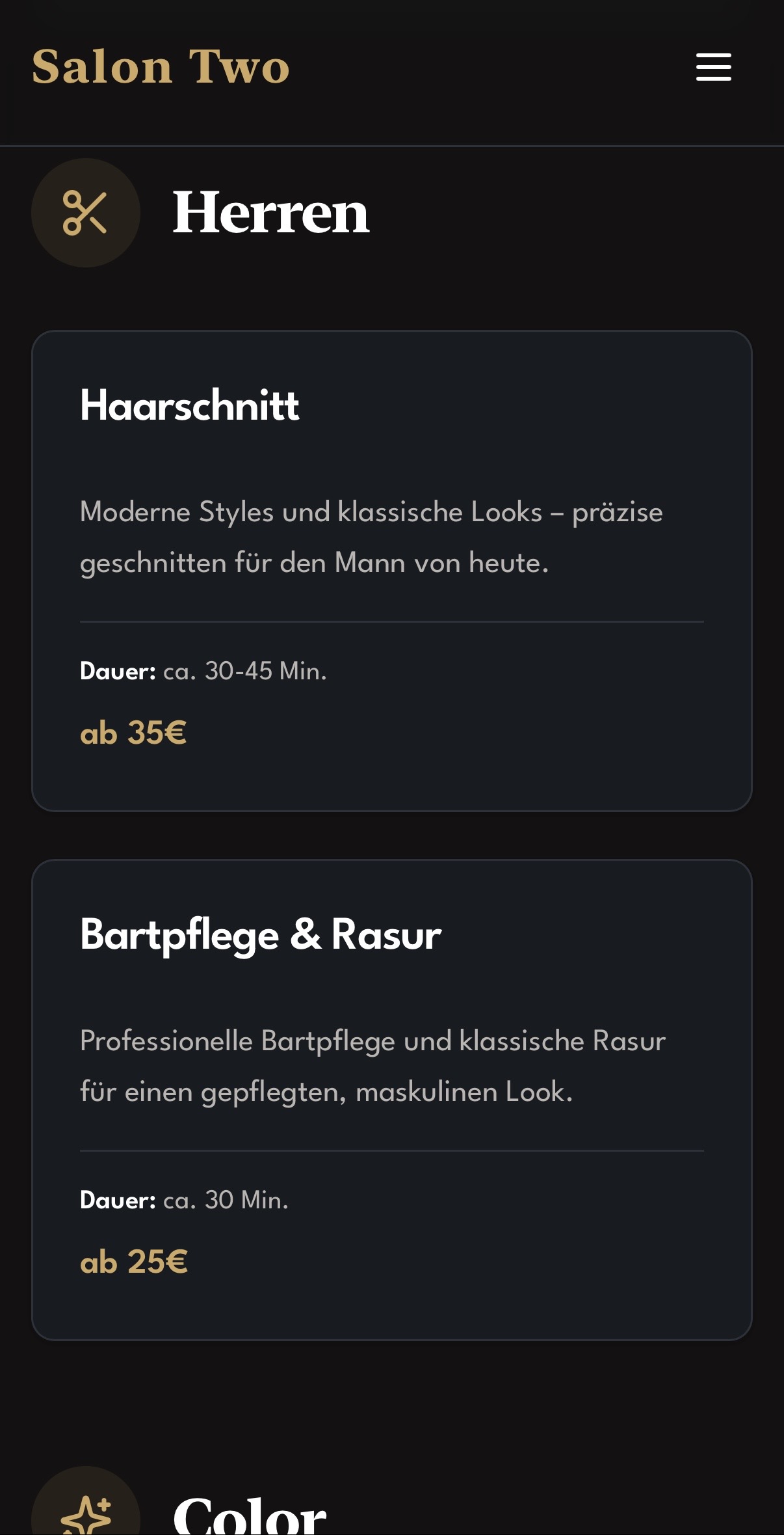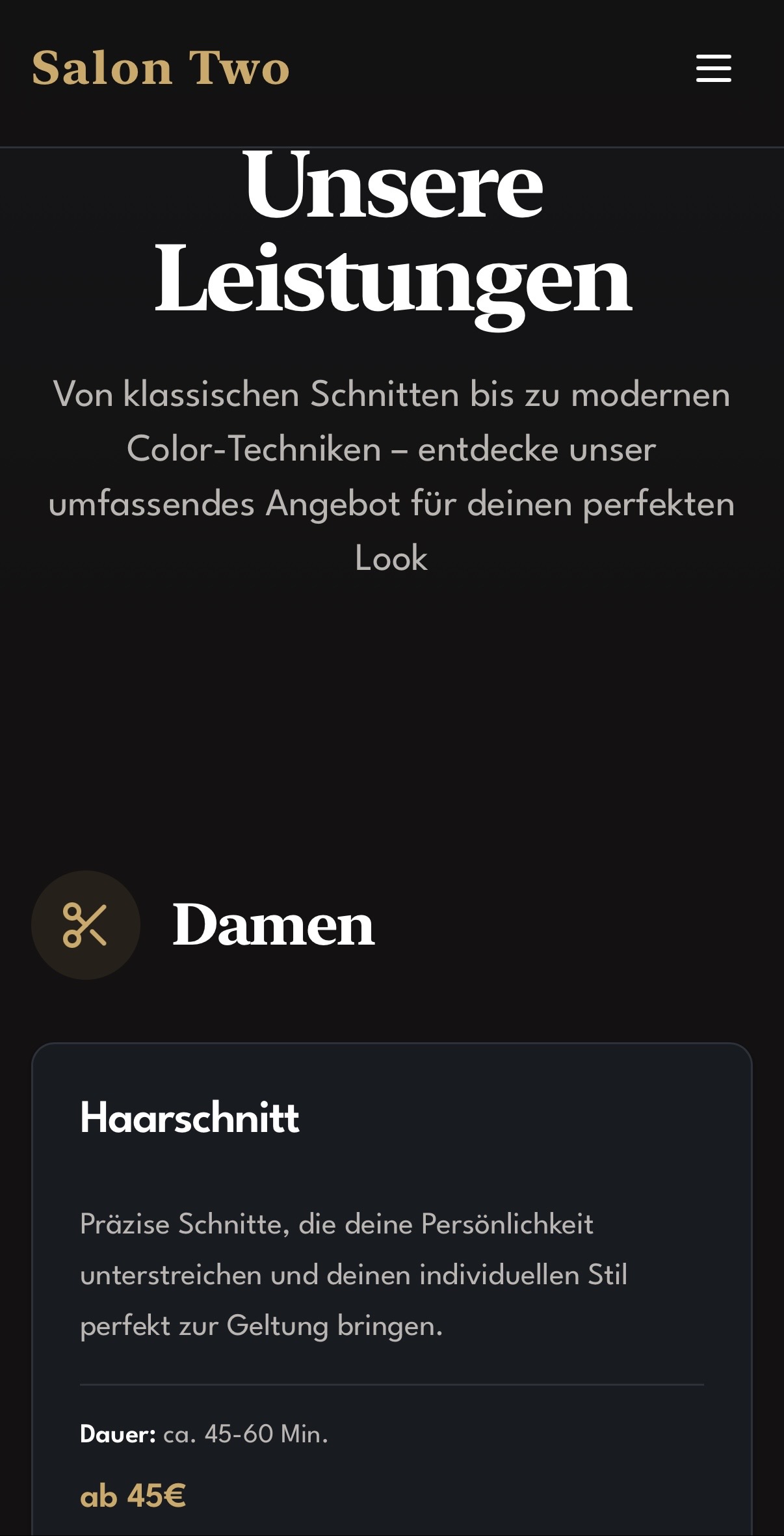 Salon Two ist eine von Uns erstellte Referenz-Seite für einen Friseur aus Hannover, Niedersachsen.