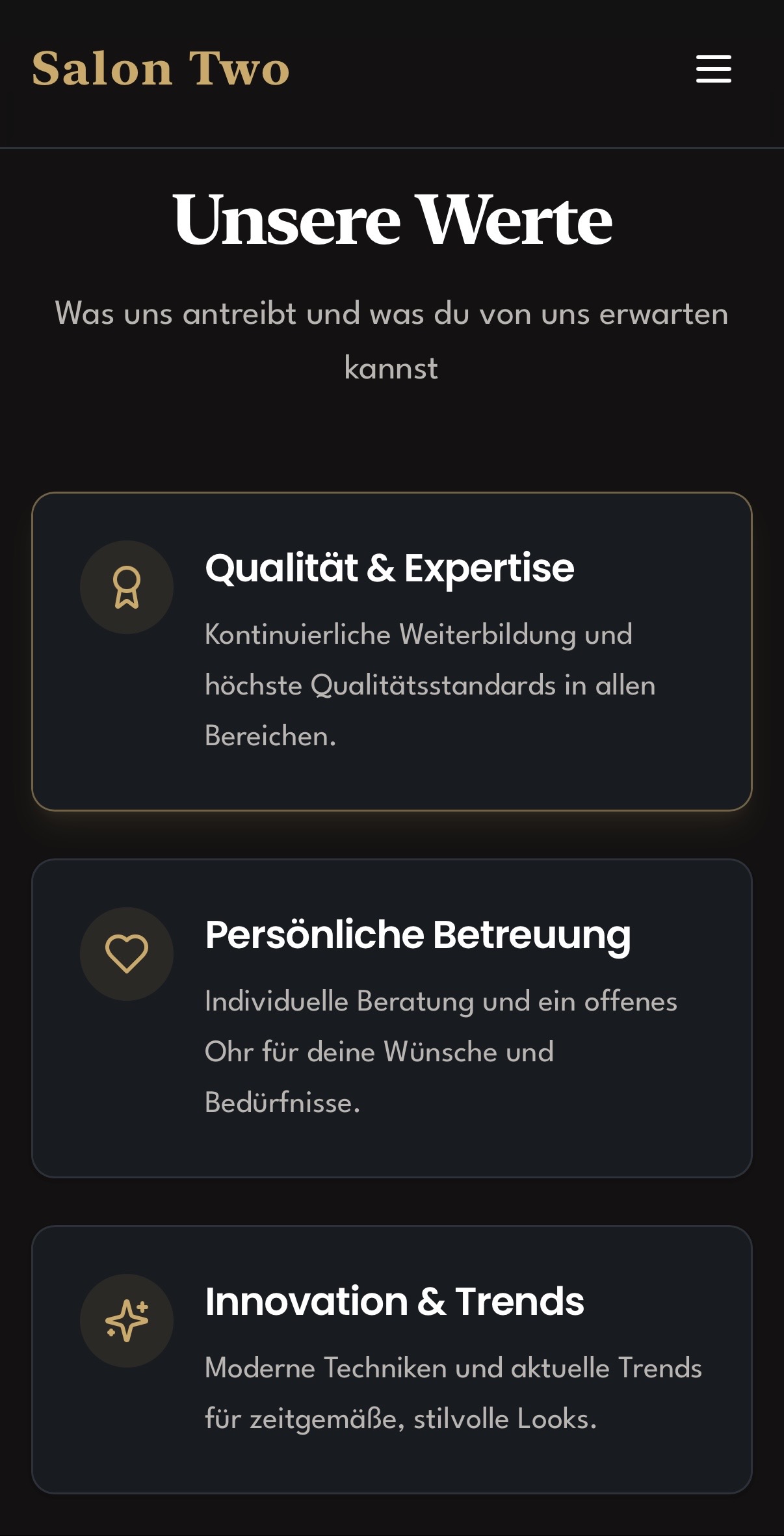 Zu Beginn schauen wir uns an, wo Ihr Friseursalon aktuell steht und welches Ziel im Vordergrund steht: mehr Anfragen, bessere Bewerbungen oder beides. Darauf basierend entwickeln wir einen klaren online Auftritt, der potenzielle Kunden und Bewerber direkt zur Kontaktaufnahme beziehungsweise Bewerbung führt.