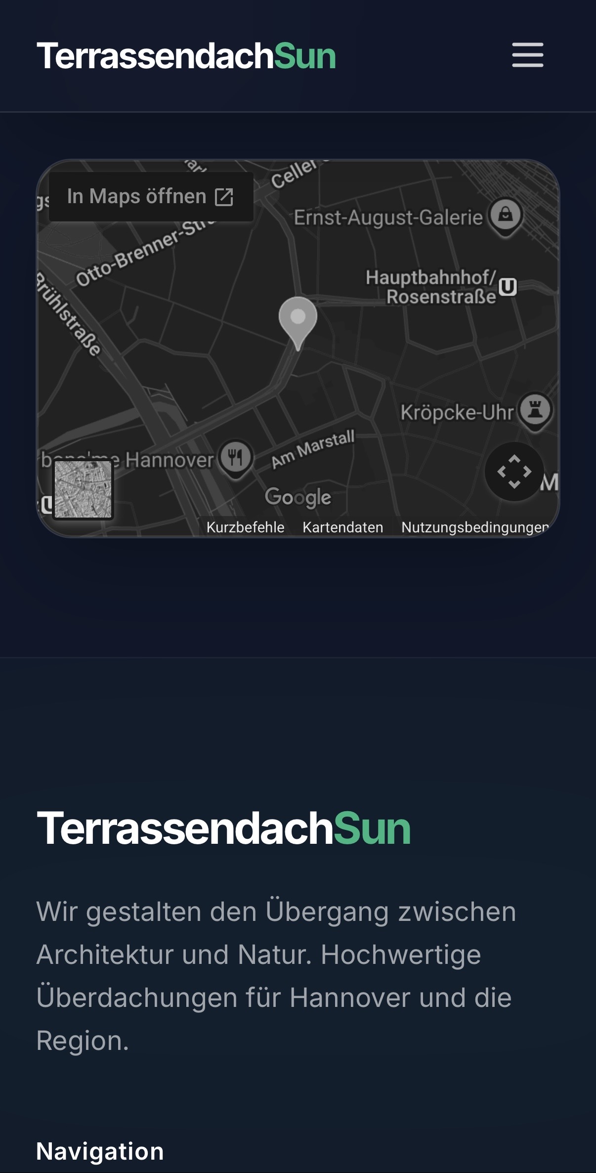 Terrassendach Sun ist eine von Uns erstellte Referenz-Seite für einen Terrassendach-Fachbetrieb aus Hannover, Niedersachsen.