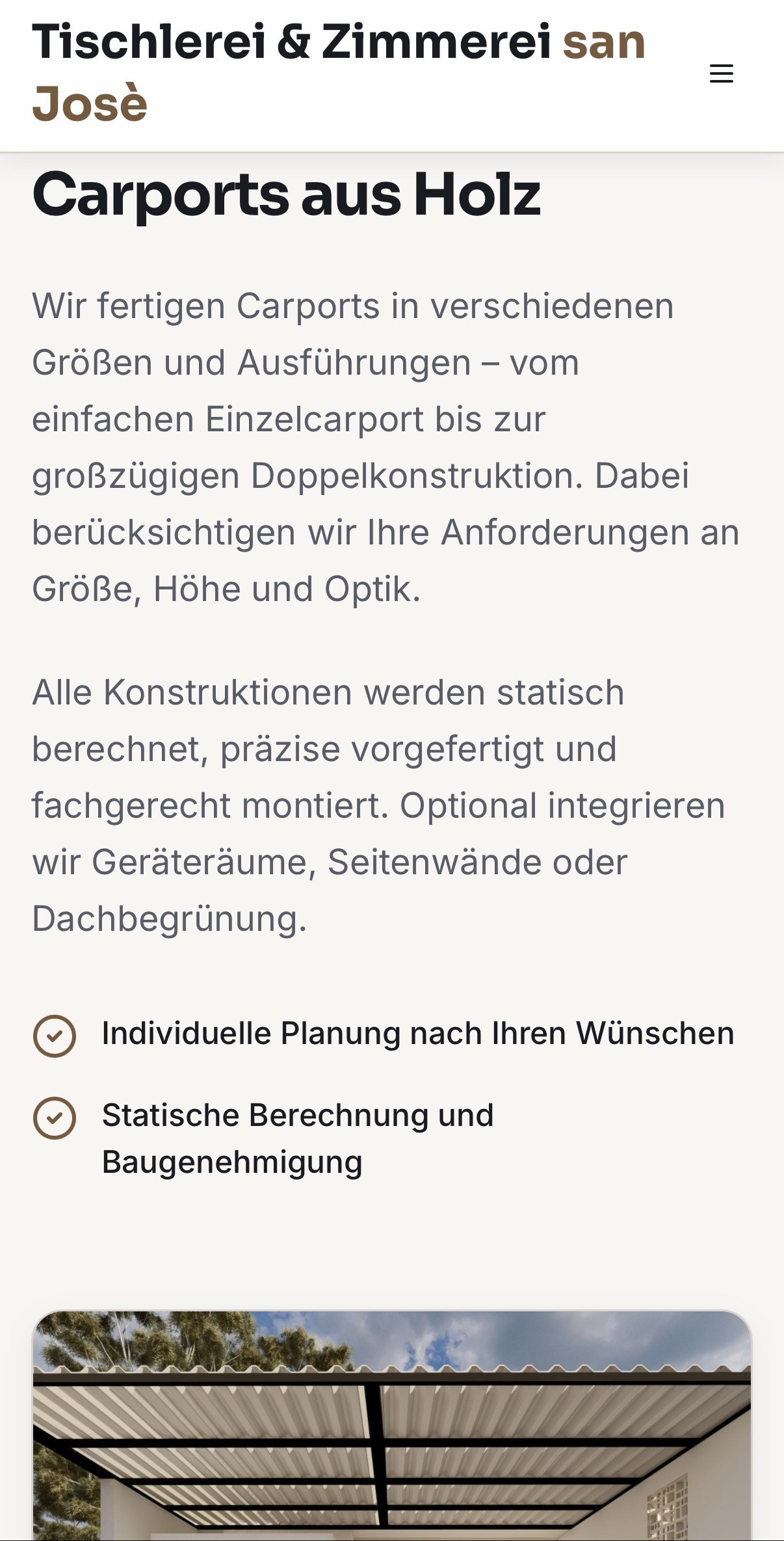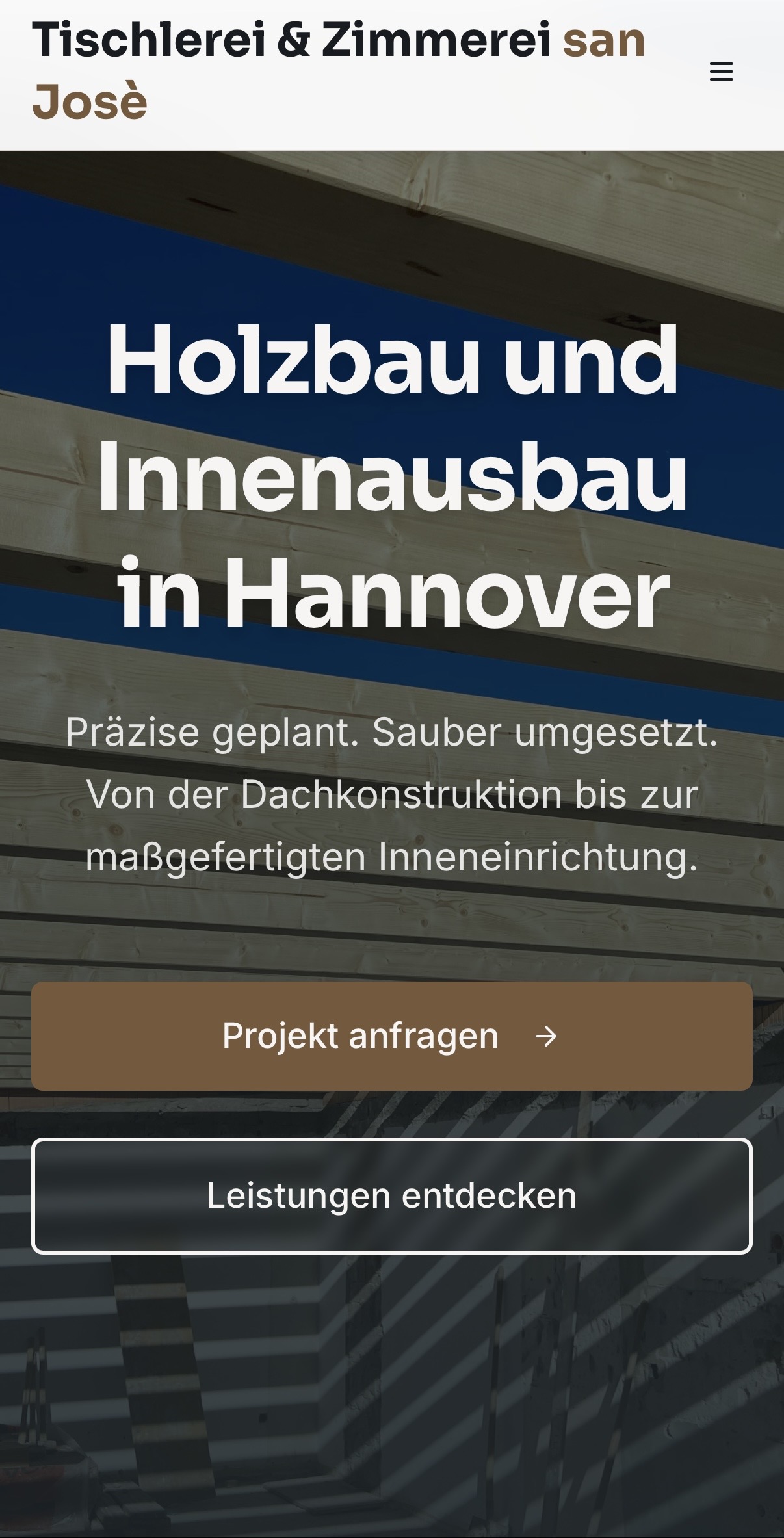 Tischlerei & Zimmerei san Josè ist eine von Uns erstellte Referenz-Seite für eine Zimmerei aus Hannover, Niedersachsen.